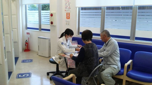 沢山の人に参加していただいたのですが、告知が少し遅れたのもあり、たまたま処方箋を持ってきてくださった方が、ほとんどでした。よくテレビでロコモティブシンドロームについてやっていた為、寝たきりと、運動や食事との関係性は知っていただいてた為、皆さん興味深々に聞いて下さっていたと思います。