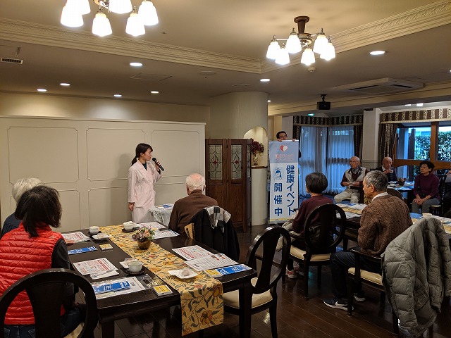2019年1月27日(月)、日本調剤 溝口薬局(神奈川県川崎市高津区)では、同区内の高齢者施設「ロングライフ梶ヶ谷」を会場として提供いただき、地域住民の皆さまの健康促進を増進する健康イベント「血管年齢測定会」を開催しました。
