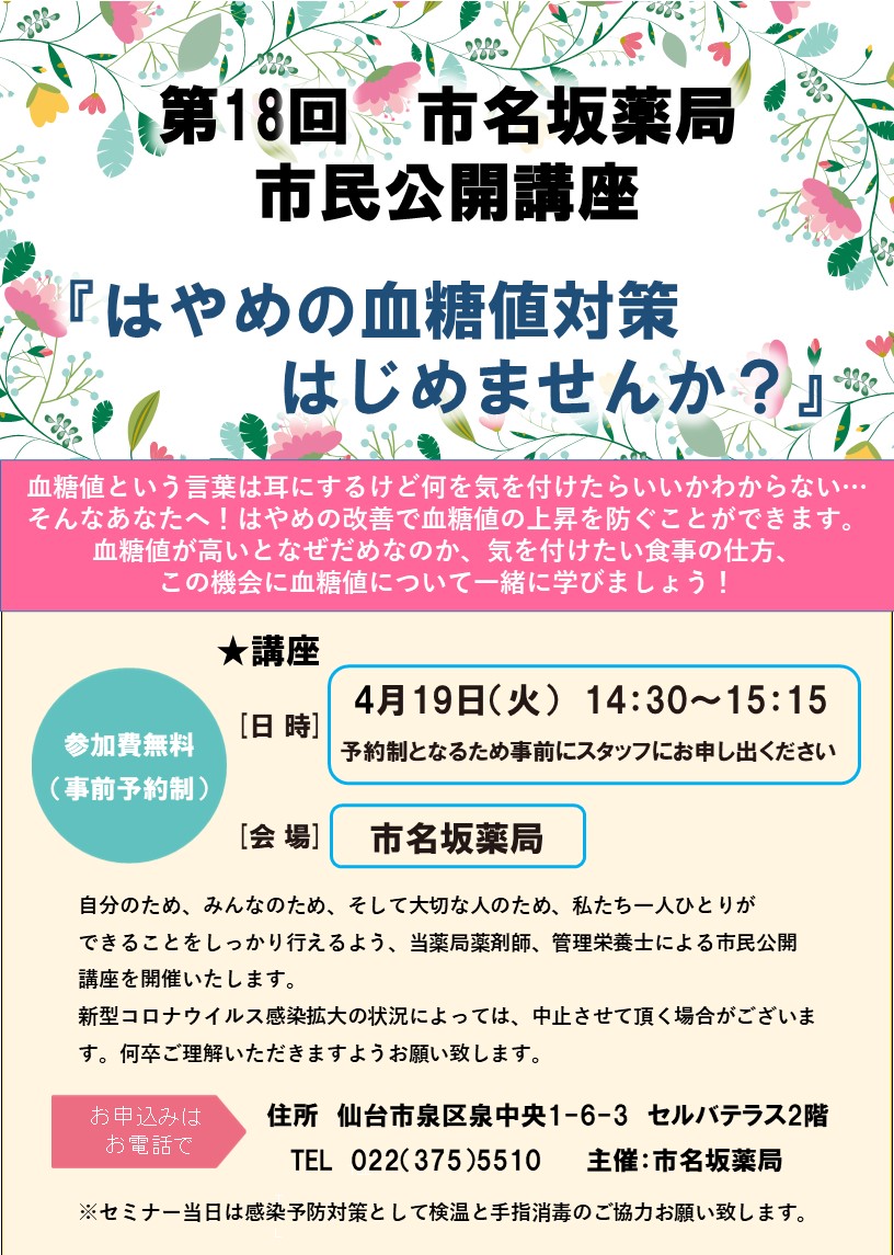 【第18回 市名坂薬局 市民公開講座】