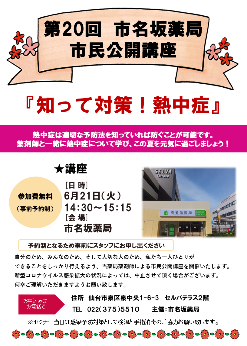 - 【第20回 市名坂薬局 市民公開講座の開催のお知らせ】