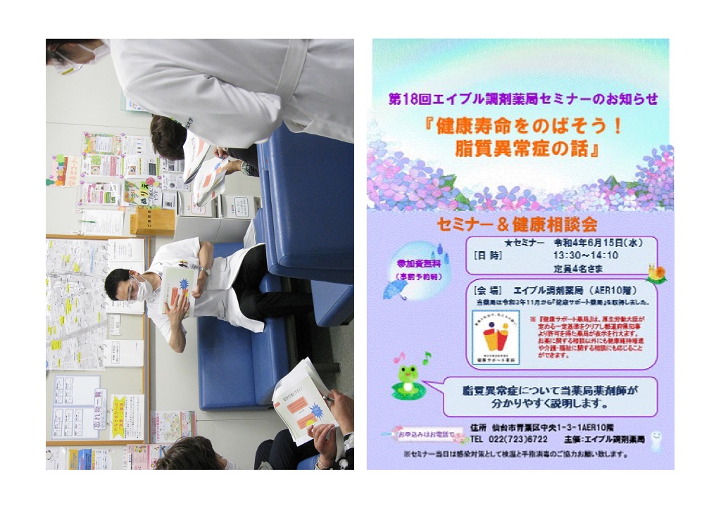 - 第18回エイブル調剤薬局セミナー&健康相談会「健康寿命をのばそう!脂質異常症の話」の実施報告
