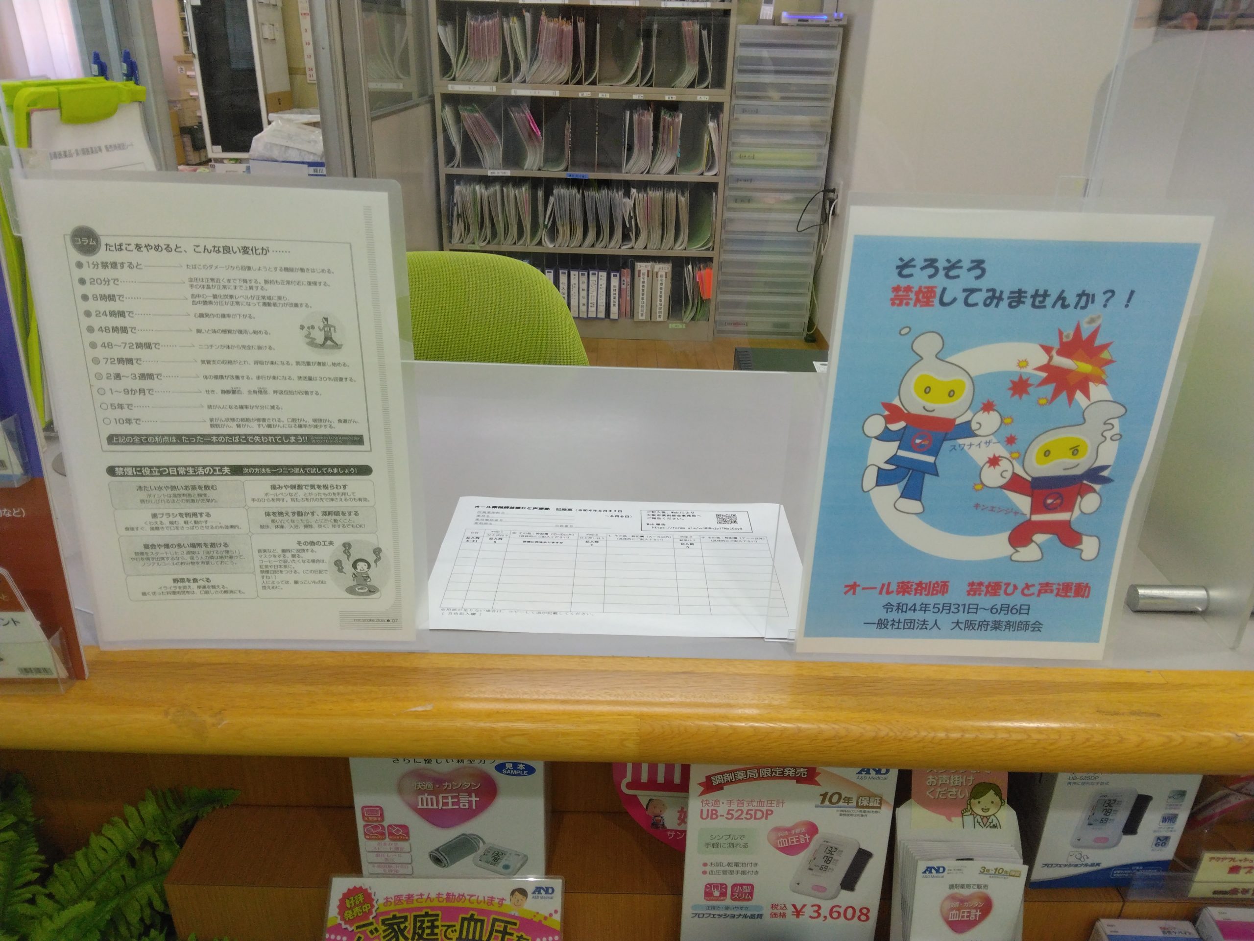 今年も大阪府薬剤師会からの案内で、禁煙支援への取り組みを実施致しました。