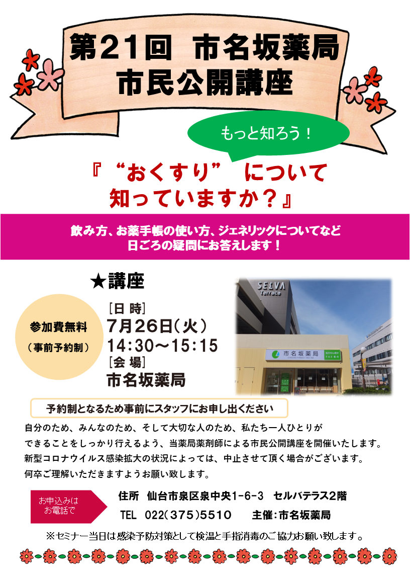 - 有限会社サンライフコミュニティー 【第21回 市名坂薬局 市民公開講座】