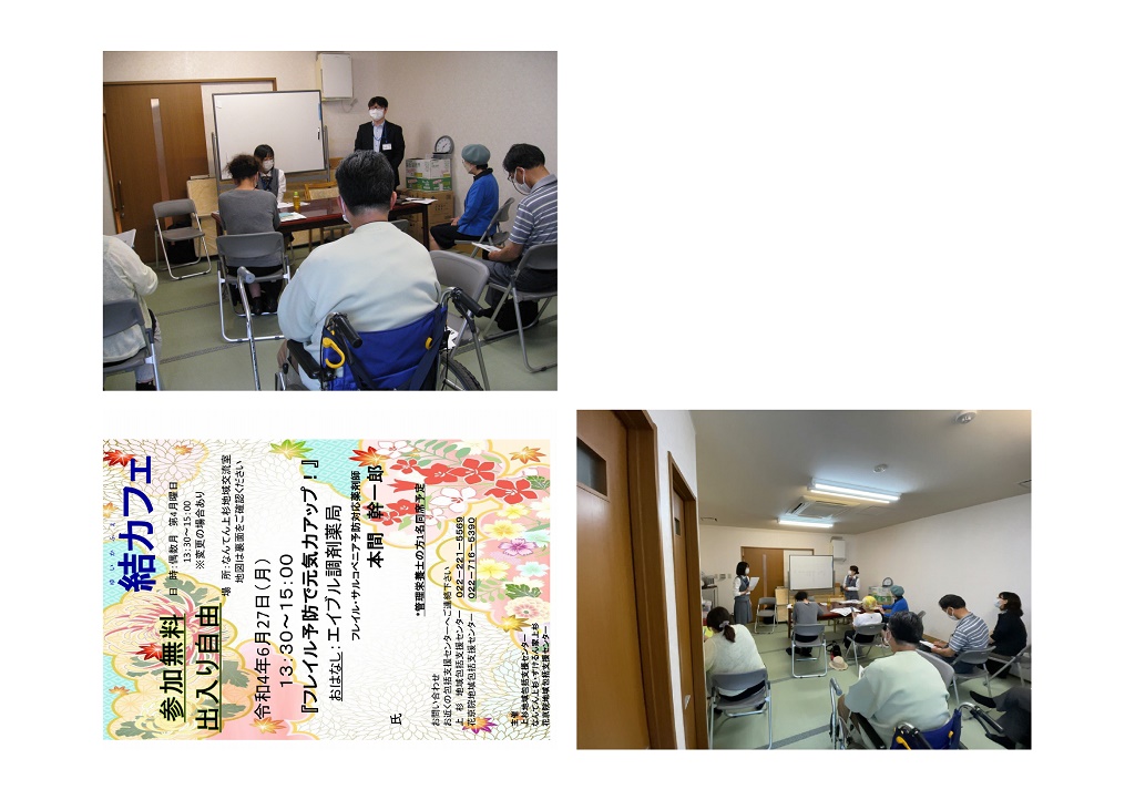 近隣の地域包括支援センターからの依頼で定期的に地域の皆様が参加される「結カフェ」において「フレイル予防で元気力アップ!」という題で当薬局の薬剤師と管理栄養士が講演を行いましたので報告いたします。