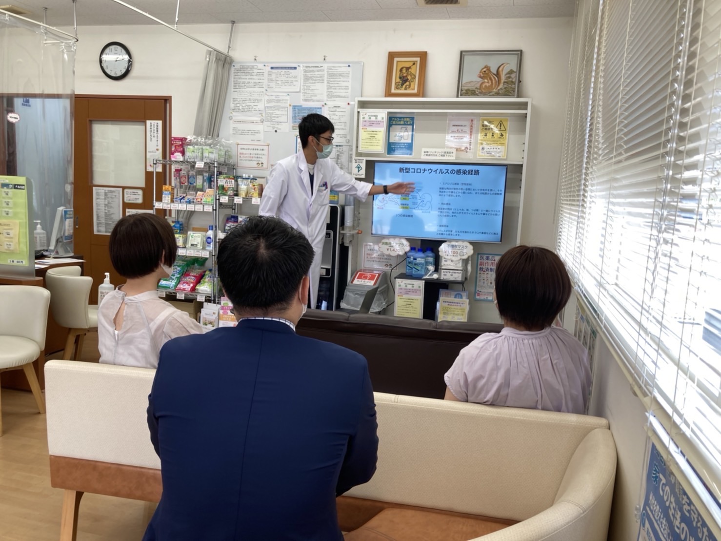 2022年6月28日(火)13:00~14:00 友愛薬局内にて第5回健康教室「コロナウイルス感染予防について~マスクのつけかた・手指消毒~」を開催し、4名の参加がありました。
