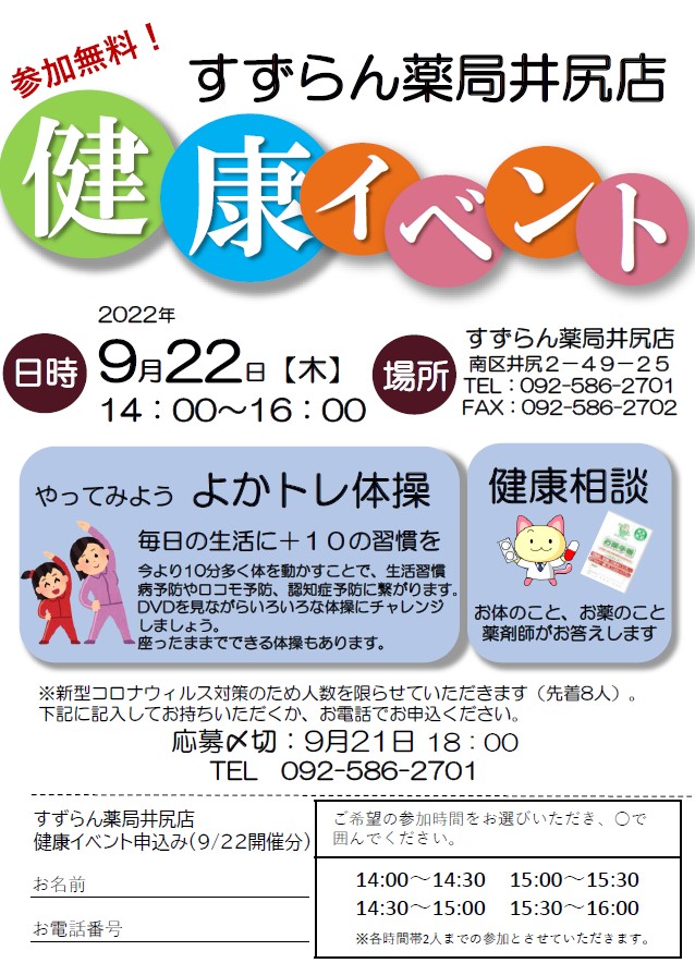 - 【有限会社ファルマウニオン】すずらん薬局井尻店 健康イベント