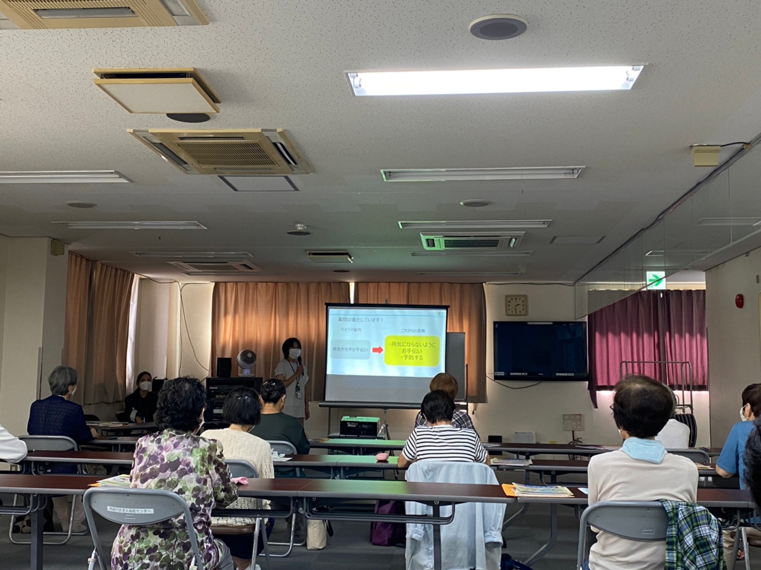 2022年8月31日に、サエラ薬局すみれ店と西淀川区社会福祉協議会の方たちと協賛で「シニアのための健康教室」を実施しました。