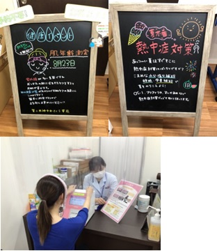 8/23に薬局内にて健康イベント、肌年齢測定、お薬相談、栄養相談をおこないました。事前に店舗外に看板や店舗内にはポスター告知をしており、当日は14名の方に参加頂けました。肌年齢は女性の方に人気が高く、そこから日ごろの栄養相談にもつながり地域の方とコミュニケーションがとれて薬局に相談ができる栄養士がいることを知った頂けたいいイベントになりました。