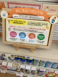 今回は「グレープフルーツジュースと飲み合わせの悪いお薬」や「飲み合わせQ&A」についてまとめた資料を配布しました。
