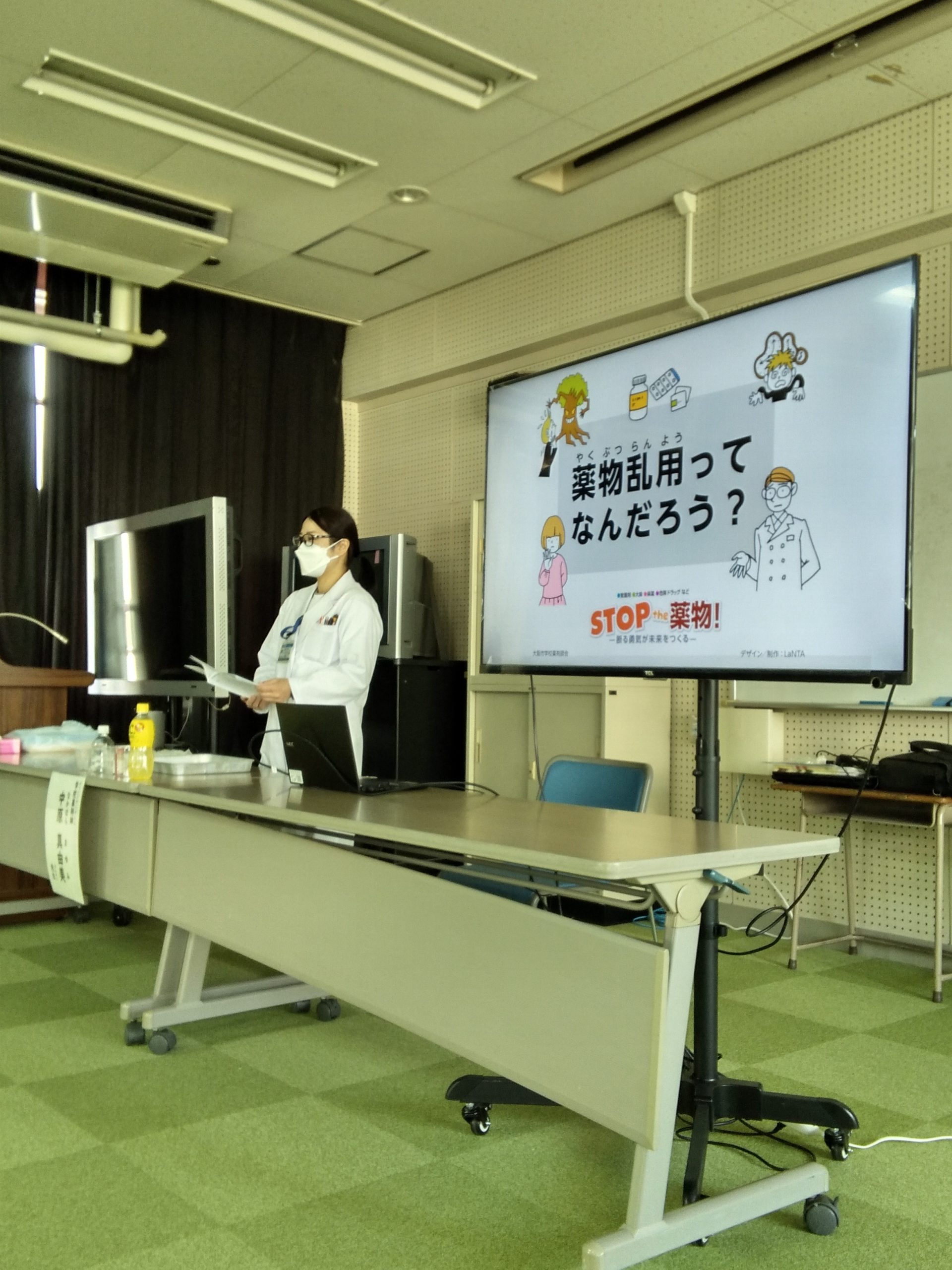6年生を対象に、正しい薬の服用方法や薬物乱用防止について実験を交えて伝えました。