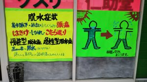 さらに、初期症状や対策を紙にまとめ、より詳しく知ってもらえるよう、来客者に資料をお渡し致しました。