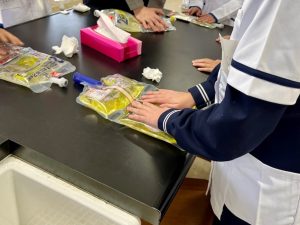 今年が初の参加ではありましたが、中学1年生の方に、実際に軟膏調剤、水剤調剤、散剤調剤、輸液調剤を体験し、