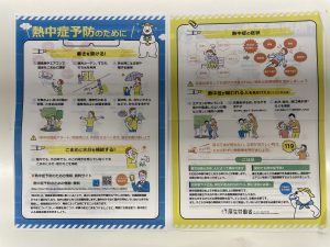 当日来局された方に、熱中症予防のための情報・資料サイトのチラシと塩レモンの飴をお配りした。