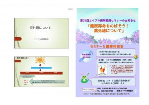 - 【有限会社サンライフコミュニティー エイブル調剤薬局】第21回エイブル調剤薬局セミナー&健康相談会「健康寿命をのばそう!紫外線について」の実施報告