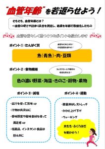 今回は「血管年齢を若返らせよう」をテーマに、血管年齢測定機器を用いて実際に測定し、動脈硬化予防におすすめの栄養素や運動についてお話ししました。