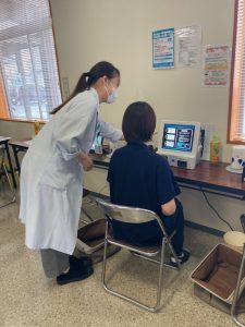 健康チェックとして、「1.骨強度/2.血管年齢&ストレス測定/3.体組成/4.血圧測定/5.物忘れ測定」を行い、