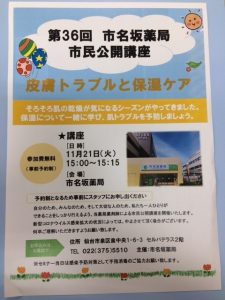 【有限会社サンライフコミュニティー】第36回市名坂薬局 市民公開講座開催のお知らせ