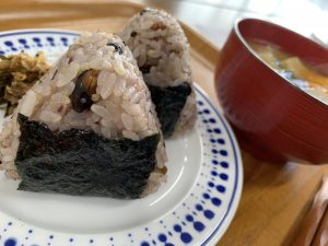 ■食物繊維たっぷり&減塩のおにぎりと豚汁