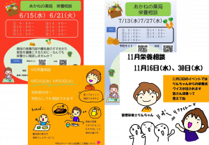 開催内容:希望者に事前予約の上で、管理栄養士と30分程度の栄養相談を実施しました。離乳食の進め方や成人病予防の食事相談などを行いました。