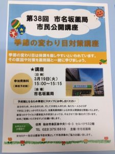 【有限会社サンライフコミュニティー】第38回市名坂薬局 市民公開講座開催のお知らせ