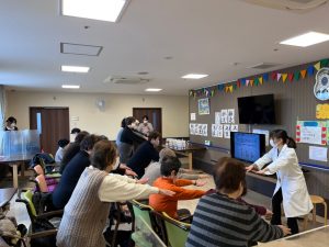 近隣の浅香山ABC薬局、浅香山グリーン薬局と共同で地域健康セミナーを実施しました。シャローム晴れる家4号館の皆様にも協力していただき、14名の地域の方々に参加して頂きました。