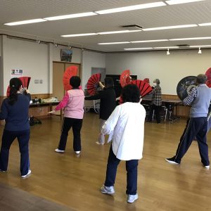 また引き続き、扇を使って楽しく華やかに行いました。それぞれ、苦手なところなど練習を重ねながら、自分のペースで行い、会話も楽しまれながら過ごされていました。