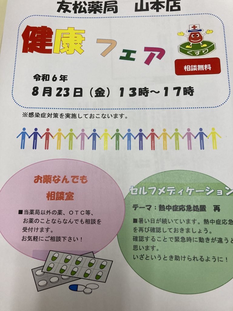 - 【友松薬局山本店】8月健康フェア開催