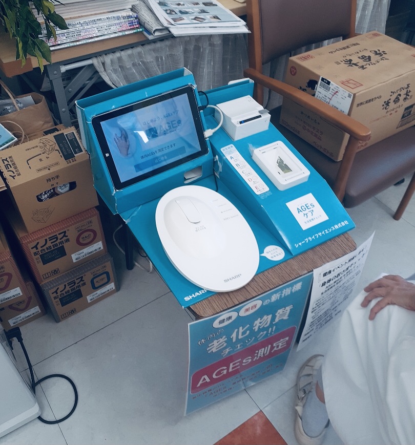 今回は8月8日に、『身体の若さ度チェック』と題して、AGEs(最終糖化産物)の測定会を行いました。