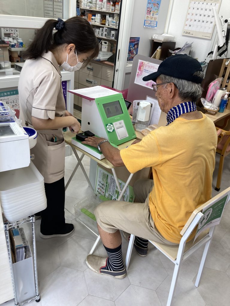 毎年9月は『健康増進普及月間』です。あろま薬局では、『食生活改善普及運動』に合わせて「野菜摂取量の増加」を目標に、ベジミル(野菜摂取度測定器)を使用した健康相談会を実施しました。