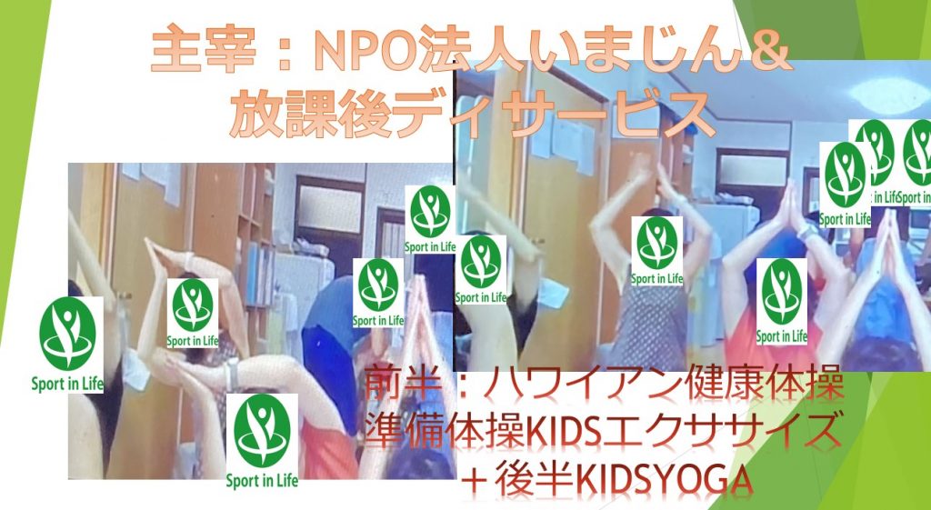 オンライン開催:準備体操はKIDSエアロビクス+ハワイアン健康体操+ KIDS YOGA(マット)実施