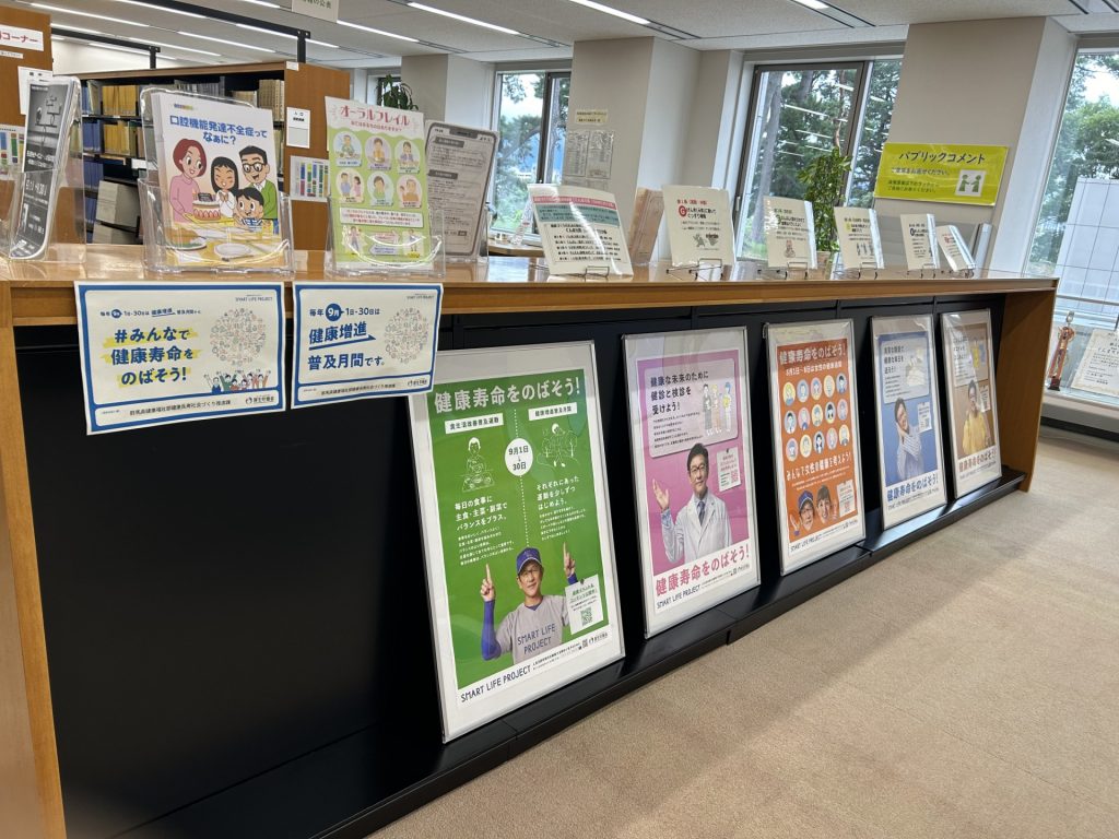 9月の「元気県ぐんま21」推進月間において、群馬県庁2階県民センターにて、健康増進普及月間の周知を行うため、展示スペースに利用ツールの周知「A」及び「C」の掲示を行った。