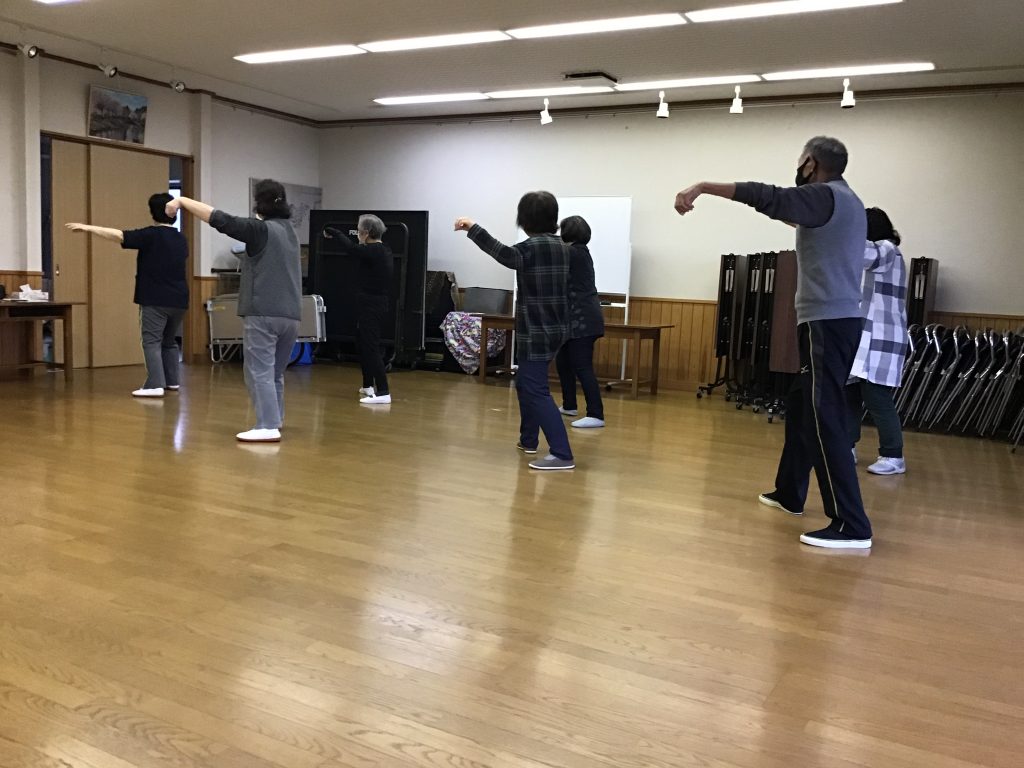今日の太極拳の動きのポイントは「鉤手(かぎて)の位置をもう少し高く上げましょう。」でした。入門のなかで、鉤手の動きがあるのですが、反対の手の動きに気を取られて、皆さんの鉤手の位置が低くなっていました。先生の声かけの後行うと、いつもよりも格好良く動きが出来るようになりました。