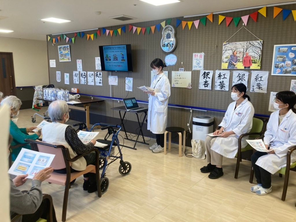 「免疫力を上げてこれからの季節に備えましょう!」というテーマで実施し、免疫力とは何か、どのような対策が必要かなど、食事と運動の話を中心にお話しました。またクイズや簡単にできる筋力アップトレーニングを行い、みなさんに積極的に参加していただけて良かったと思います。