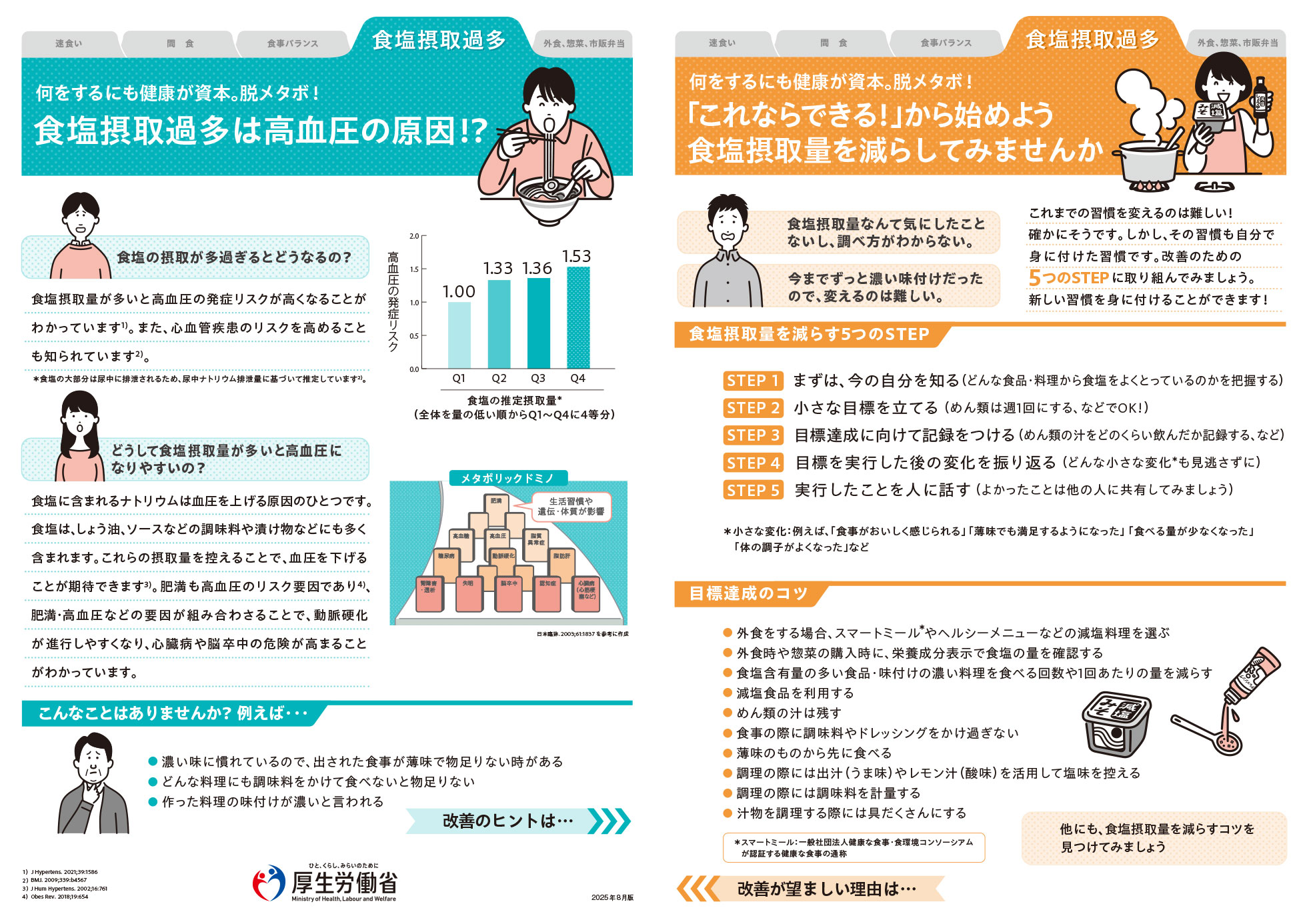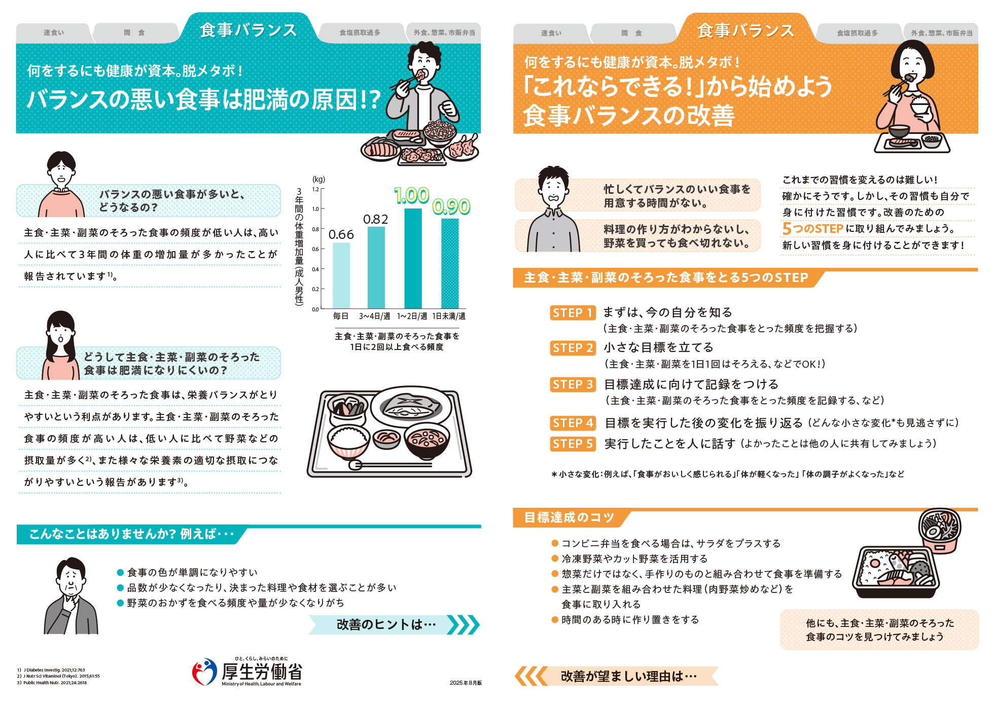 食生活のチェック項目別、肥満やメタボリックシンドローム(メタボ)の予防・改善のための健康づくり支援リーフレット